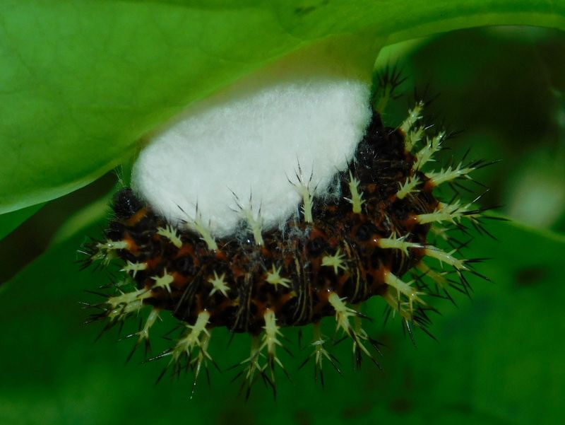 -- 寄生されて動けない、ルリタテハの幼虫。