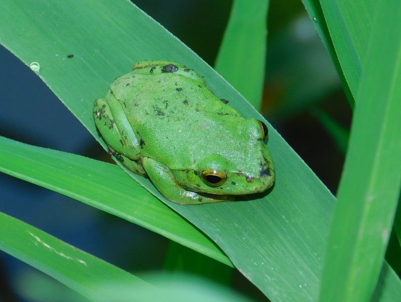 -- つつましげに、シュレーゲルアオガエル。