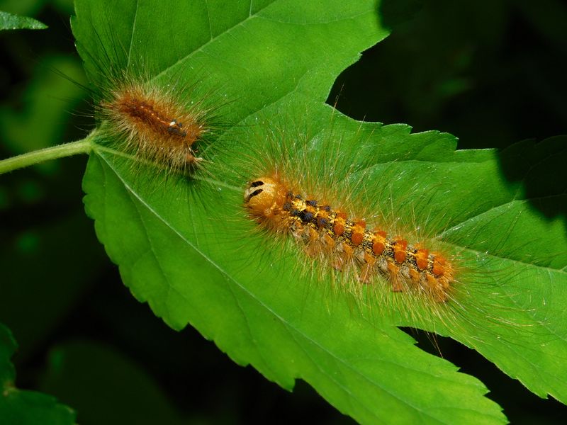 -- 脱皮したマイマイガの幼虫と抜け殻。