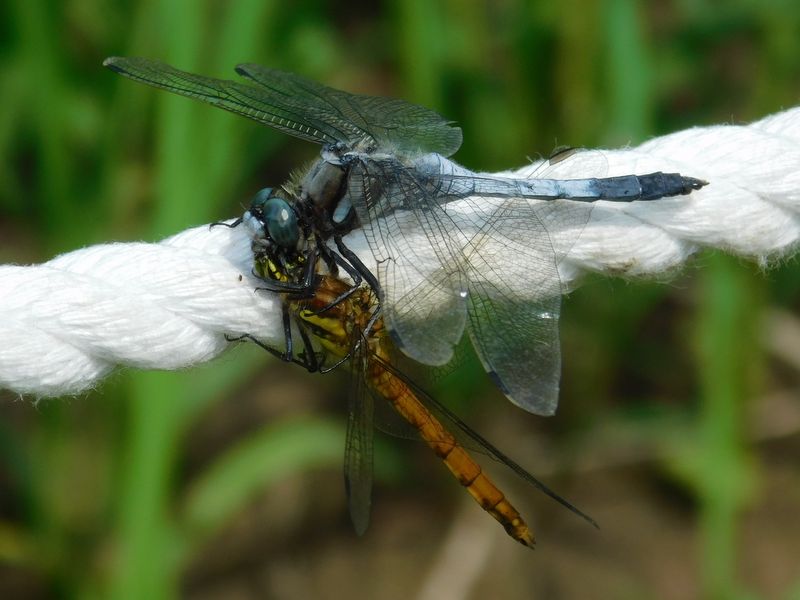 -- アキアカネ♀を捕食するシオカラトンボ♂。