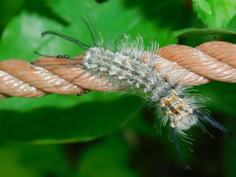 -- カシワマイマイの幼虫。右が頭。