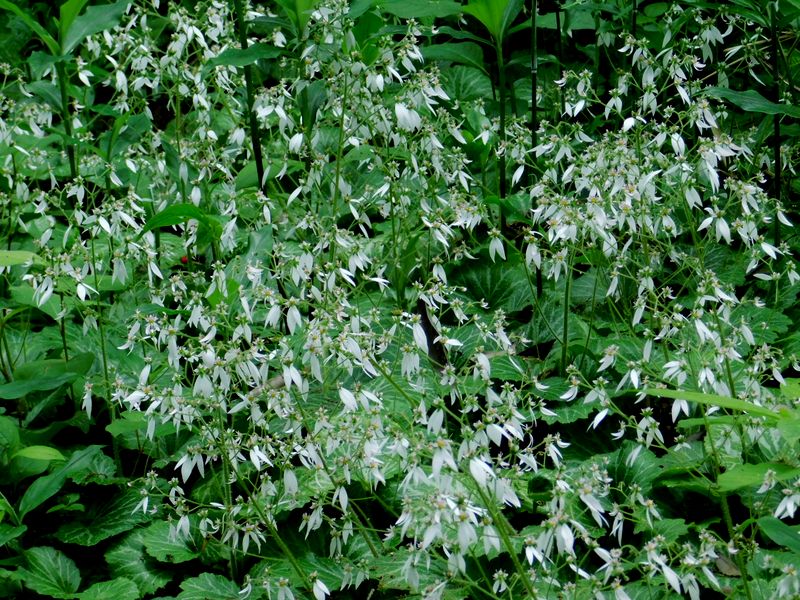 -- 林床に、ユキノシタの群落。