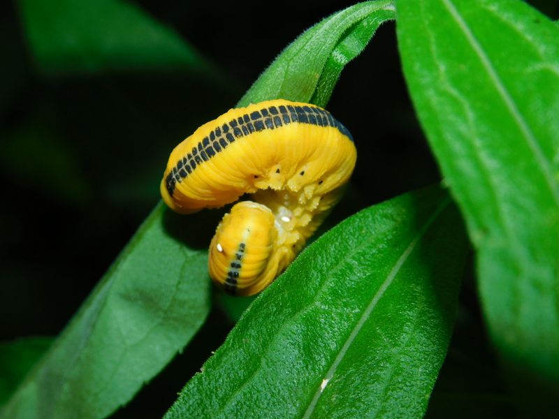 -- 丸まった、ナシアシブトハバチの幼虫。6:53