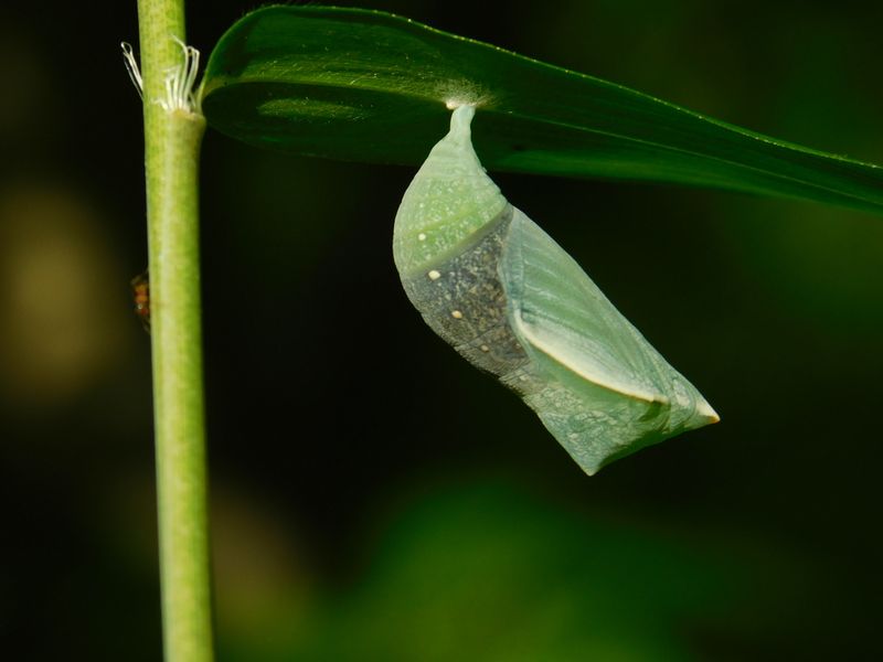 -- ヒメジャノメのさなぎ@笹の葉