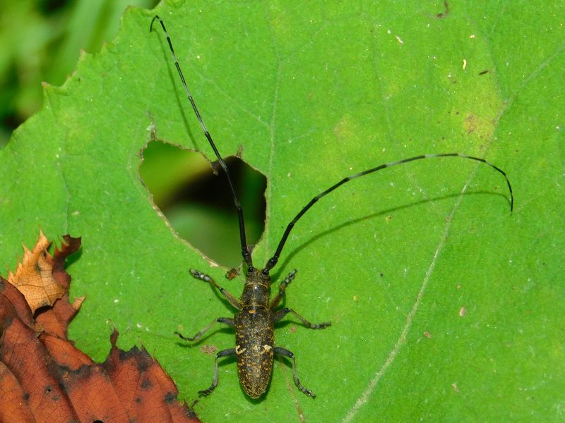 -- ヒメヒゲナガカミキリ。触角を触手のように。