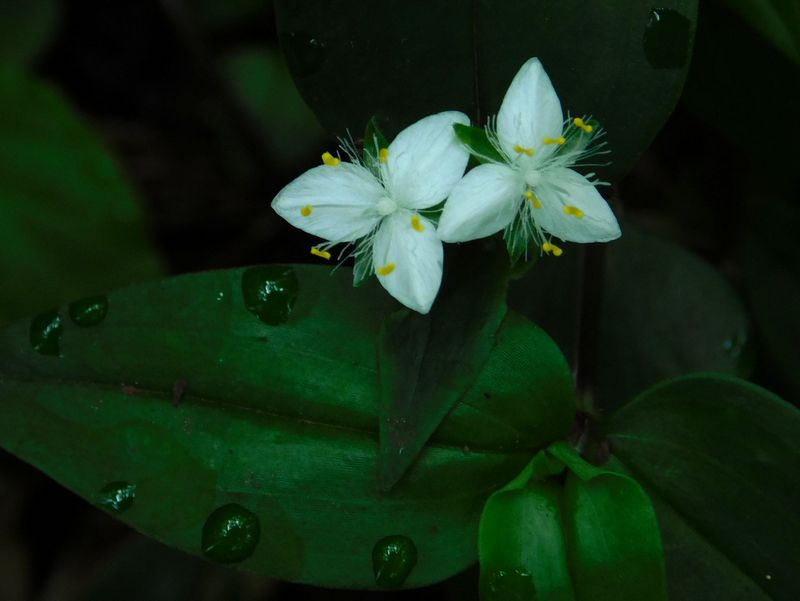 -- トキワツユクサと草露@暗い林床