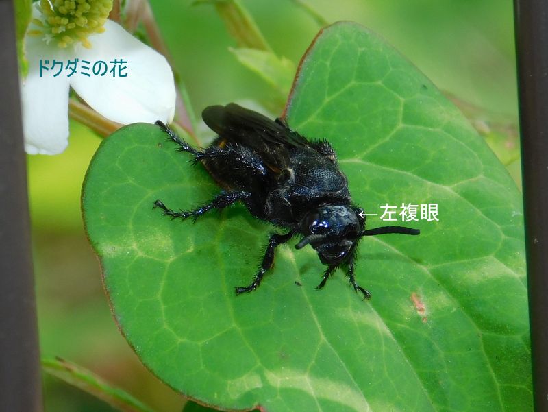-- 黒くて触角が太いハチ@ドクダミの葉