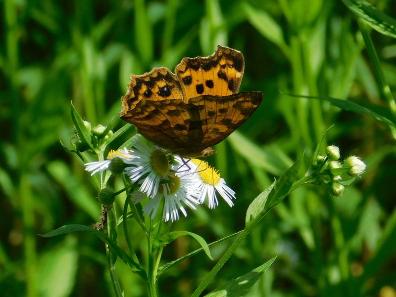 -- 吸蜜するキタテハ@ヒメジョオン。