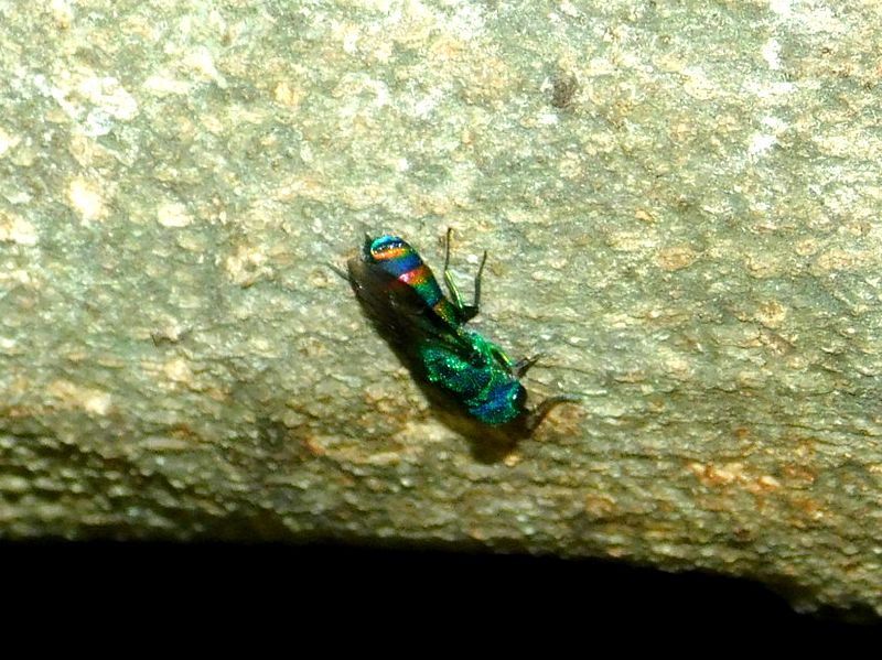 -- 青・緑・赤・橙色が輝く、ムツバセイボウ。