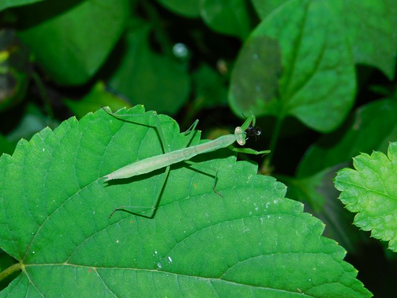 -- カマキリの幼虫が何かを捕食。