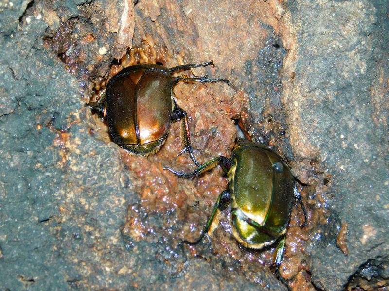 -- 樹皮をめくって、頭を突っ込むカナブン。