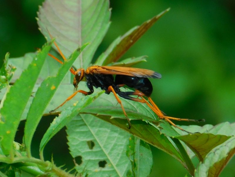 -- ついに♀に逃げられた、ベッコウクモバチ♂。
