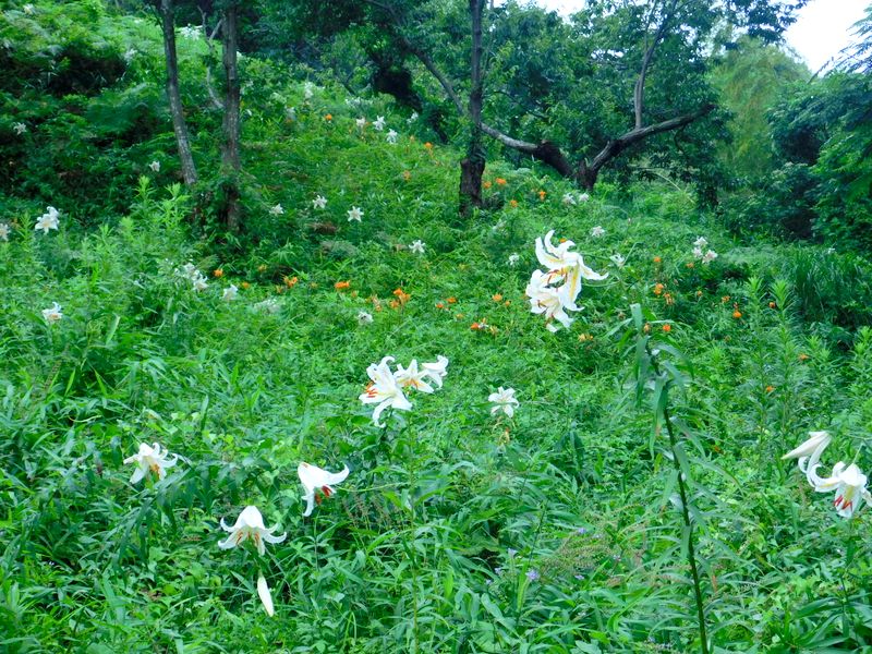-- ヤマユリとコオニユリの咲く斜面。17:32