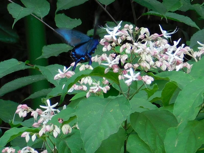 -- クサギの花を訪れた、カラスアゲハ。