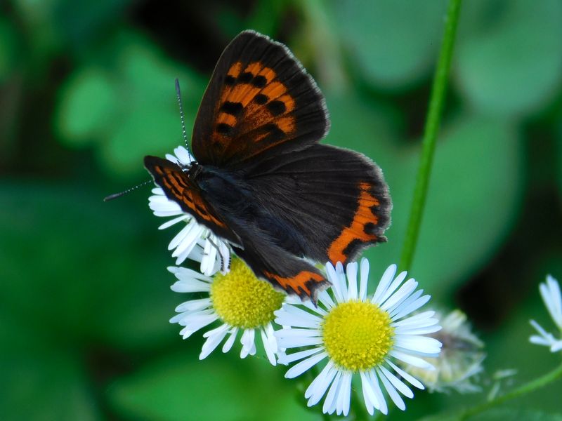 -- ベニシジミ夏型:前縁の黒が幅広。