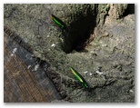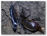 2020年8月2日(日) ◆ようやく関東地方でも梅雨が明けた。うれしいが、当然暑くなる。同時に、虫たちの動きも変わるはずだ。という訳で、またまた新治へ足を運ぶ。◆まずはじめに、旭谷戸広場のせせらぎに行った。ダイコンソウとミズタマソウを改めて撮影するためだ。すると、草の上で翅を開いて休む、カラスアゲハを見つけた。左右の尾状突起が壊れているが、翅の輝きは申し分なく美しい。するとオニヤンマが飛んできて、カラスアゲハの上の赤いミズヒキにとまった。こうして蝶とトンボのトップスターを、同一フレームに撮影するという僥倖に恵まれた。◆梅田遊水地で、腰が黄色のコシアキトンボを見つけた。♀ならラッキーだと思ったが、撮影してみると未成熟の♂。副性器がしっかり写っていた。◆きょうも各所でカブトムシを見ることができた。カラスにも、子供たちにも捕まらなかったカブトムシが、こんなにいて単純にうれしい。◆きょうはタマムシが2度も帽子に飛んできた。帽子の色が木の色に似ているからか? これとは別に、倒木でタマムシを4頭見つけた。タマムシと引き合うのは縁起がいい。きょうは少しばかりリッチな日になったようだ。