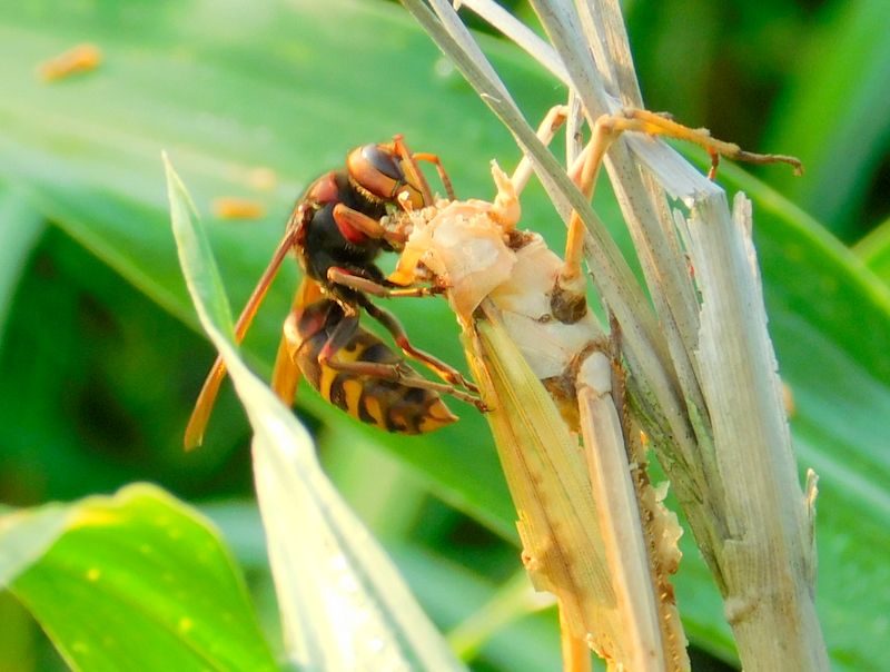 -- バッタの死骸とモンスズメバチ。