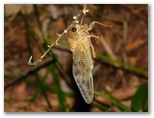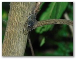 2020年8月18日(火) ◆きょう早朝の部は、現地滞在1時間のショートステイ。最近のヒット率の傾向から、観察地を梅田遊水地と旭谷戸に絞り、特に目を引いたものを撮影した。◆昨日ルリモンハナバチ2頭を見たキバナコスモスに、今朝も2頭が来ていた。トラマルハナバチは、カンナの花の奥深くに潜り込んで吸蜜。他に、ツチバチの一種とツマグロヒョウモン♀もいた。◆お盆も過ぎ、翅の傷んだ虫も多く見られるようになった。トンボ、セミ、蝶、等々。ただ翅がかなりボロになっても、飛ぶ力が衰えているようには見えない。力強く飛ぶ虫たちの力は、どのように生み出されるのだろう? ◆午後の部は、暑さのピークが過ぎた3時半から、カラスウリの花が咲くまで。クマゼミを除くセミ各種の♂と♀がいくらでも見つかるが、今の関心はヤンマ類と大型の蛾類。◆常見谷戸と鎌立の奥を中心に探索するが、結果はさっぱり。空しく時間が過ぎ、暗くなったので、カラスウリの場所に向かう。◆その途中、2頭のアブラゼミと思いがけない出遭いがあった。1頭は道路をノコノコ横断する幼虫。拾い上げて、木にとまらせた。2頭目は羽化進行中で体が白っぽく、翅の前縁がまだ緑色。◆カラスウリの花は、午後7時頃まで待つと、見頃になるようだ。先に咲いたのは雄花。雌花の開花までは待ちきれなくて、家に帰った。