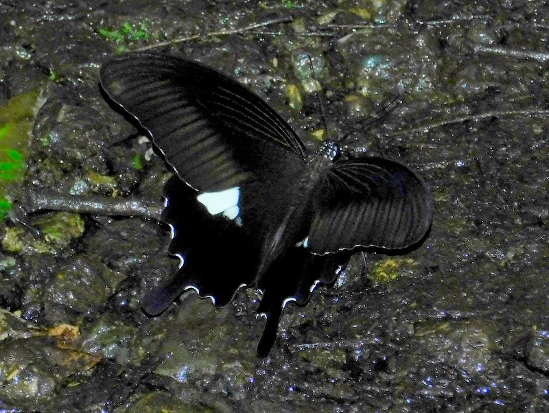 -- 暗い道で吸水する、モンキアゲハ。17:42