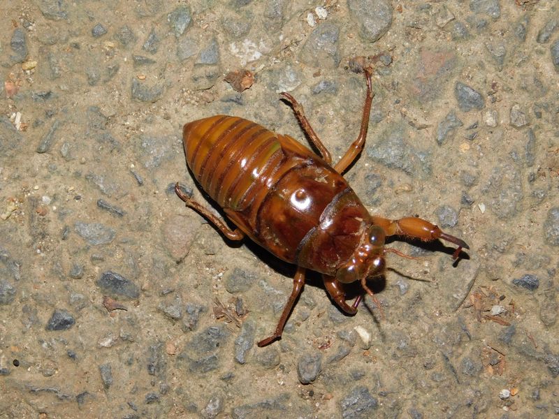 -- 道路を横断する、アブラゼミの幼虫。18:20頃