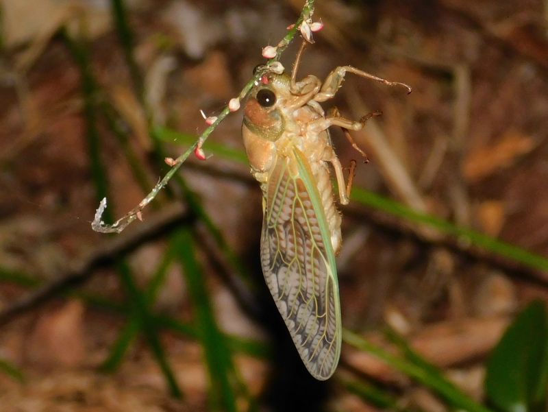 -- ミズヒキに未熟アブラゼミ♀:別個体。18:30頃