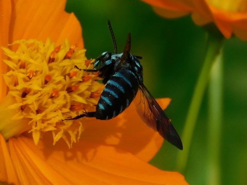 -- 2頭いる、ルリモンハナバチ@キバナコスモス