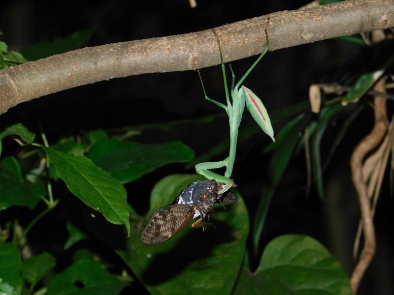 -- カマキリの幼虫がアブラゼミを捕食。