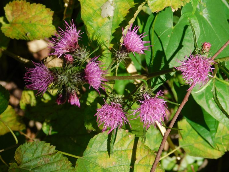 -- 春には食草のスミレ類が育つ場所にトネアザミ。