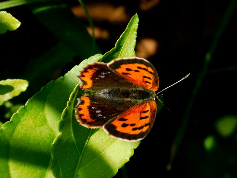 -- 西日を浴びる、ベニシジミ:青い四つ星。