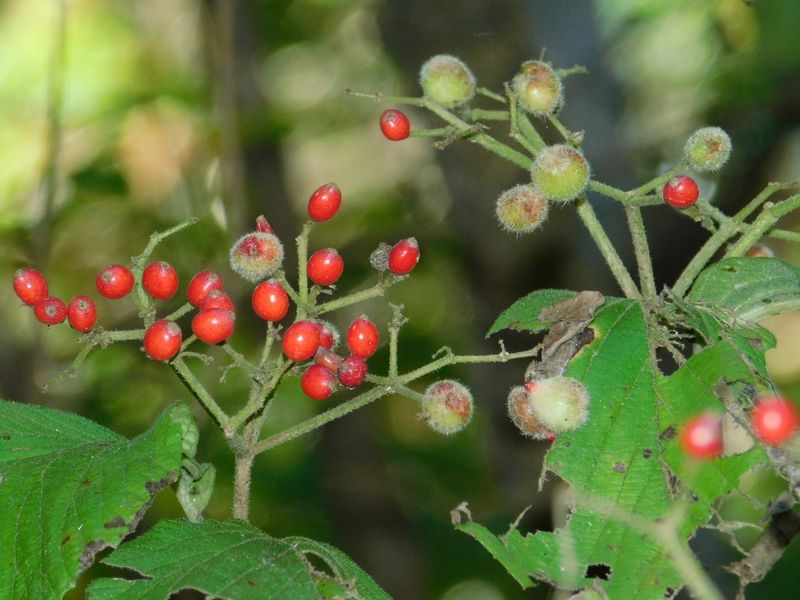 -- ガマズミの実(赤)とガマズミミケフシ。