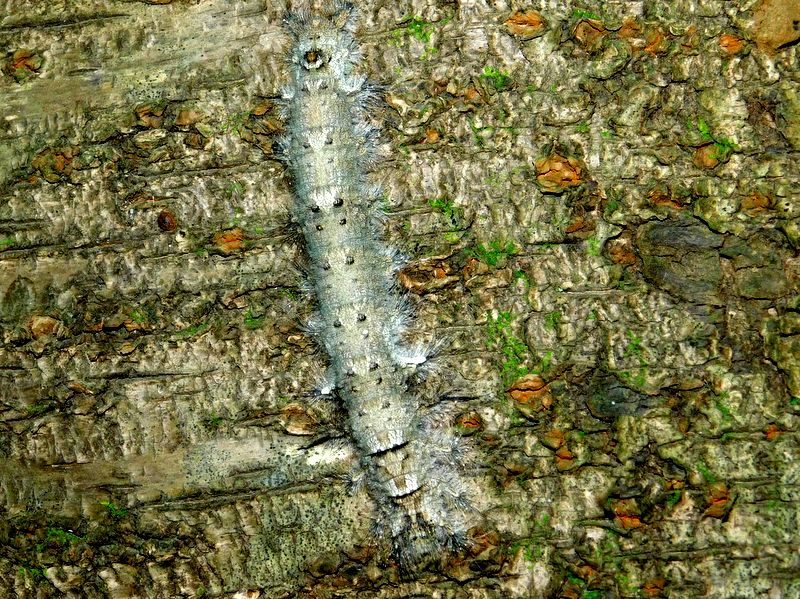 -- カレハガの幼虫@桜:下が頭。体長約90mm.