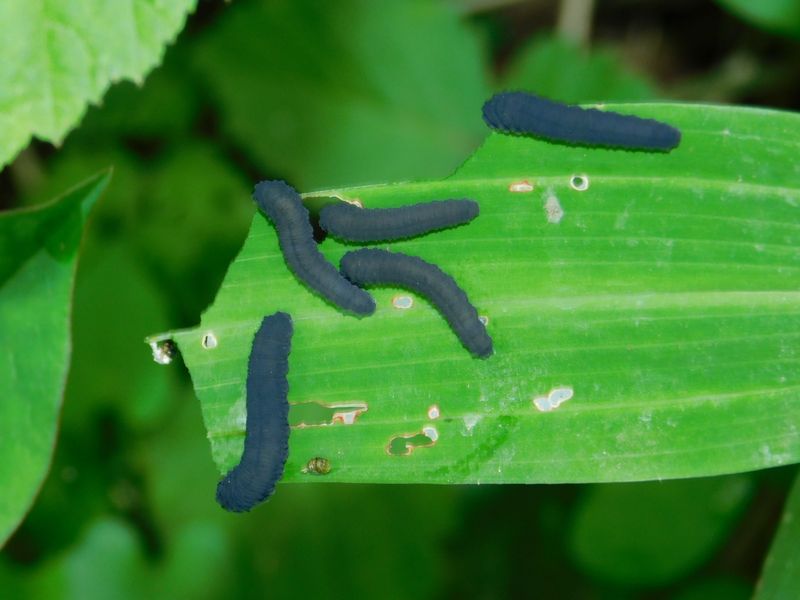 -- ヒゲナガクロハバチの幼虫たち@ナルコユリ