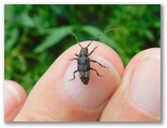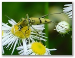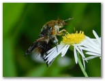 2021年6月21日(月) ◆梅雨時の曇り空は、晴天のように貴重だ。朝一で空模様と天気予報とを見て、素早く洗濯を済ませ、雨の降らぬうちにと外出する。そして花や虫を訪ねれば、心身の健康に好いのだ、と勝手に思う。◆虫情報を得て、ヒメジョオンの花に目を凝らす。珍しいカミキリムシ、スカシバ(蛾)、ハチ、ハエなどが見つかった。気を良くして観察範囲を広げると、さらに小型の虫たちが続々と見つかった。◆大きな羽音を立てて、何かが帽子の上に止まった。頭がモゾモゾする。10分ほど経っても居座っていたので、追い払ったらコオニヤンマだった。飛び立つときの羽音にも迫力があった。◆地面の小穴の近くに、ハラアカマルセイボウがいた。小穴の中からツチスガリが出てくるのを待っているのだろう。私もしばらく小穴を見守っていたが、根負けしてあきらめた。その小穴との関係は分からないが、近くのヒメジョオンにツチスガリがいた。