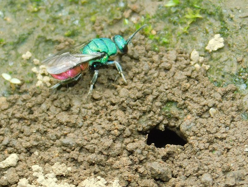 -- 産卵の機会を窺う、ハラアカマルセイボウ。