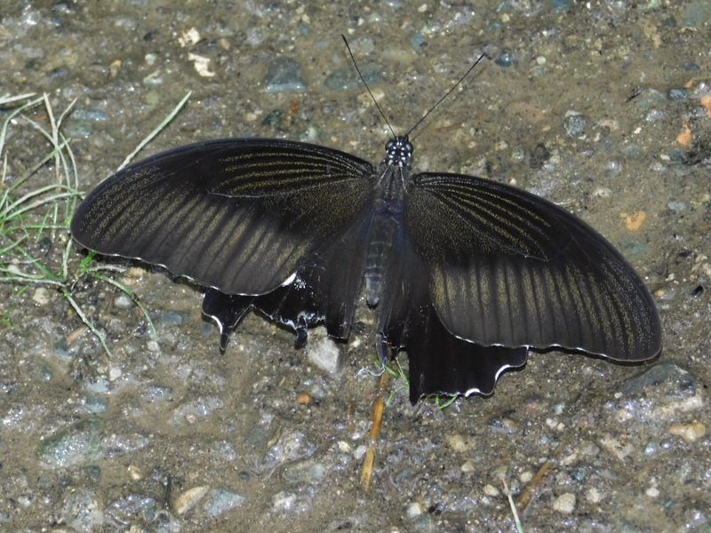 -- 吸水中のモンキアゲハ:後翅に攻撃を受けたよう。