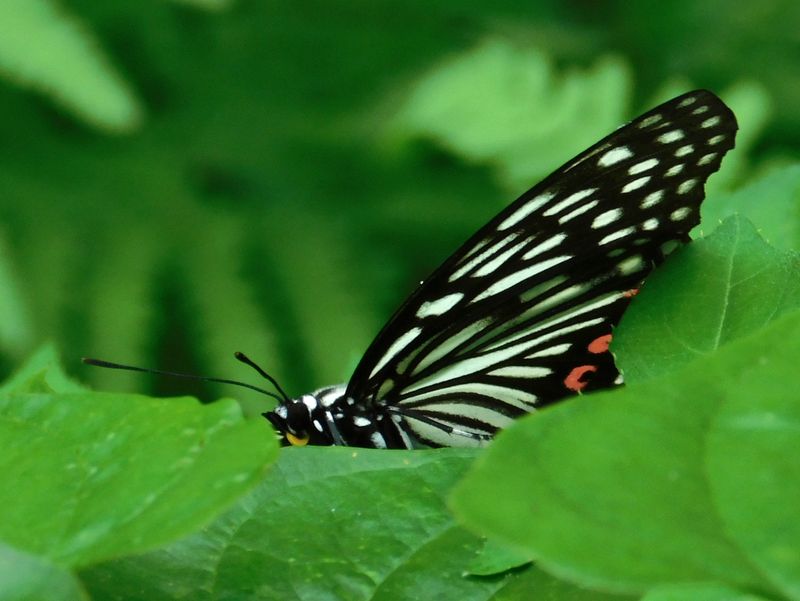 -- 葉の陰に、アカボシゴマダラ。