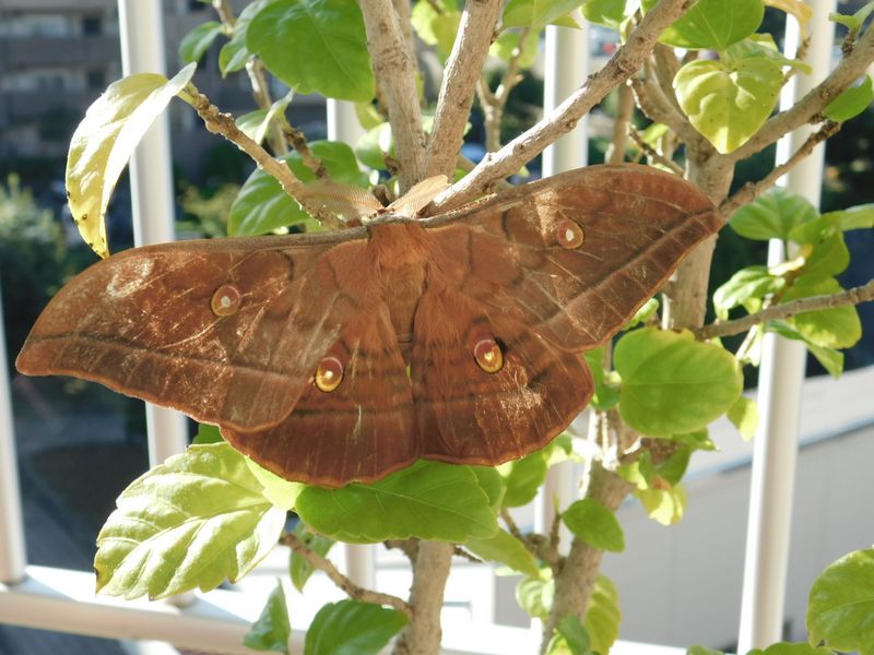 -- ベランダのハイビスカスに移した。飛べるかな?