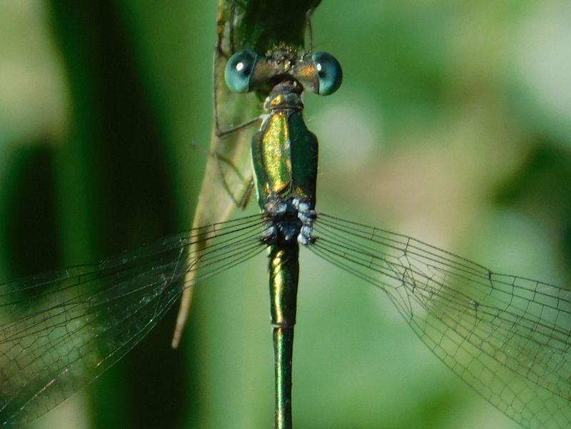-- オオアオイトトンボの頭部と胸部。