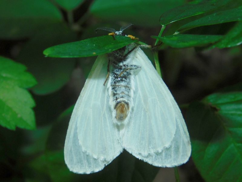 -- 地面スレスレに、キアシドクガ♀。