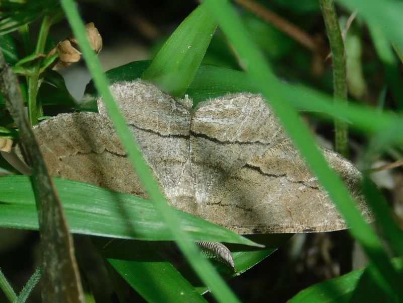 -- 草むらに飛び込んだ、クロクモエダシャク。