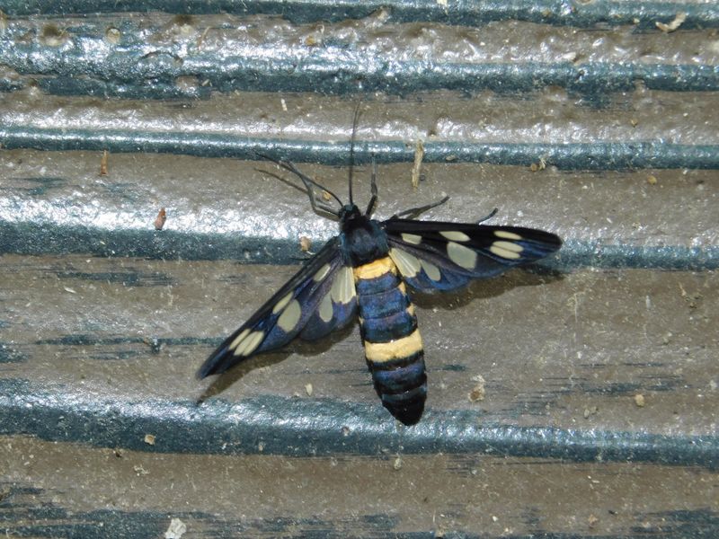 -- がんばれ、カノコガ:体が重そうで滑り落ちる。