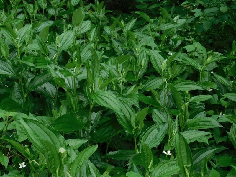-- ハンゲショウ:まだ緑一色。