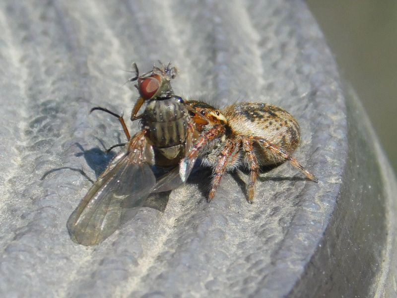 -- ニクバエ(の一種)を捕らえた、ネコハエトリ。