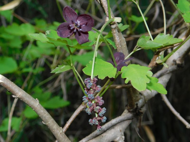 -- ミツバアケビ:上の大きいのが雌花。
