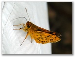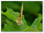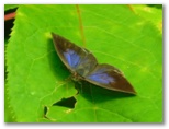 2023年6月8日(木) ◆ひょっこり時間ができた。さっそく新治に向かう。ショート探索のつもりなので、食べ物も飲み物も持たずに出発。◆いきなりオオミドリシジミ♀と出遭った。林内と林縁を行ったり来たりしている。林内では高速で飛び回るが、林縁に戻ると草の葉の上で開翅。のんびり、くつろぎムード。◆地面に置いたリュックサックに、キマダラセセリがとまった。カメラを向けると、私のズボンにとまった。汗ばんではいなかったので、乾いたズボン表面の塩を舐めに来たのだろう。◆ミドリヒョウモンの新鮮そうな♂がいた。フラッシュ撮影すると、翅の裏の模様が金緑色に輝いた。これが本日のイチ押し画像。◆ミドリシジミが葉の上で、不思議な格好の逆立ちをしていた。蝶の逆立ちなど、聞いたことがない。証拠写真を撮ったら、普通の姿勢に戻り、樹上に飛んで行った。