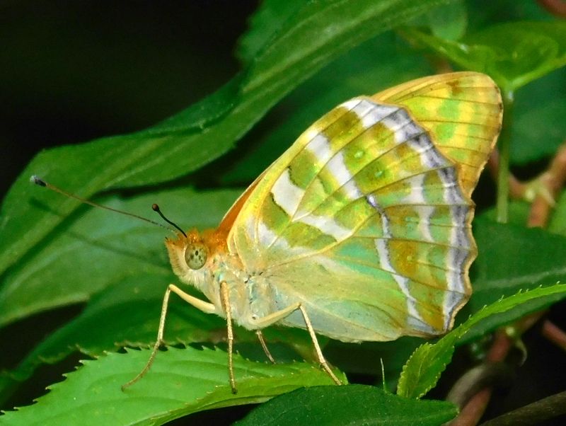 -- 同一ミドリヒョウモン:フラッシュ光を反射。