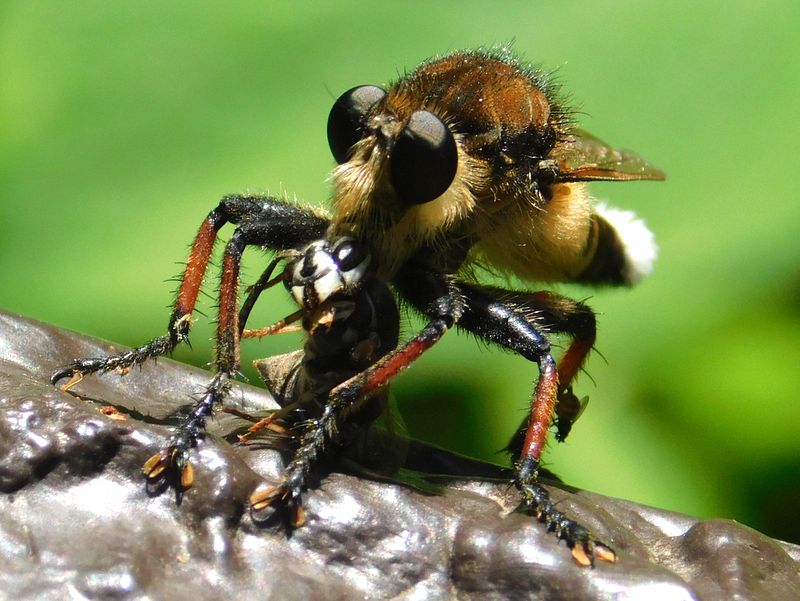 -- ハチを捕食したシオヤアブ♂。