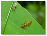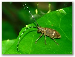 2025年5月27-28日 ◆当地は片足がすでに梅雨入りした。週間天気予報には、曇りマークがずらりと並ぶ。でもこの季節、大雨でも降らない限り、室内に籠ってはいられない。◆曇天の効果か、草むらの蛾や小さな昆虫が、次から次へと目に入ってくる。今が旬のクサイチゴを食べながら、小昆虫を撮っていった。◆今はゼフィルスが撮れないと、不発感が残る。そこで翌日の晴れ間に、ショート探索を敢行。暗い場所の地面スレスレに、ミズイロオナガシジミを見つけた。2日分を合わせて掲載する。◆栗、イボタノキは未開花。立入禁止ゾーンに、一日にして大きな踏み跡ができていた。