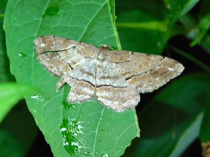 -- クロクモエダシャク:左後翅を啄ばまれたか?