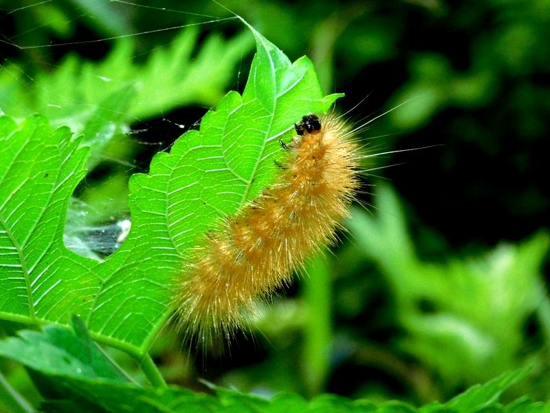 -- クワの葉をひたすら食う、オビヒトリの幼虫。